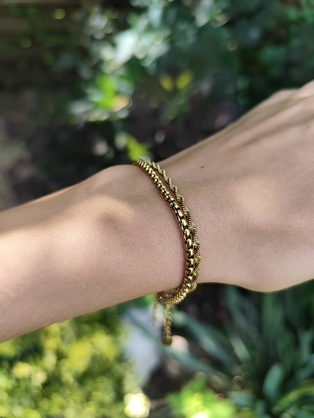 Are un lanț fin, ușor răsucit, care prinde lumina în cel mai subtil mod. Placată cu aur de 18K și realizată din oțel inoxidabil premium, e genul de piesă pe care o porți mereu — pentru că merge cu tot.