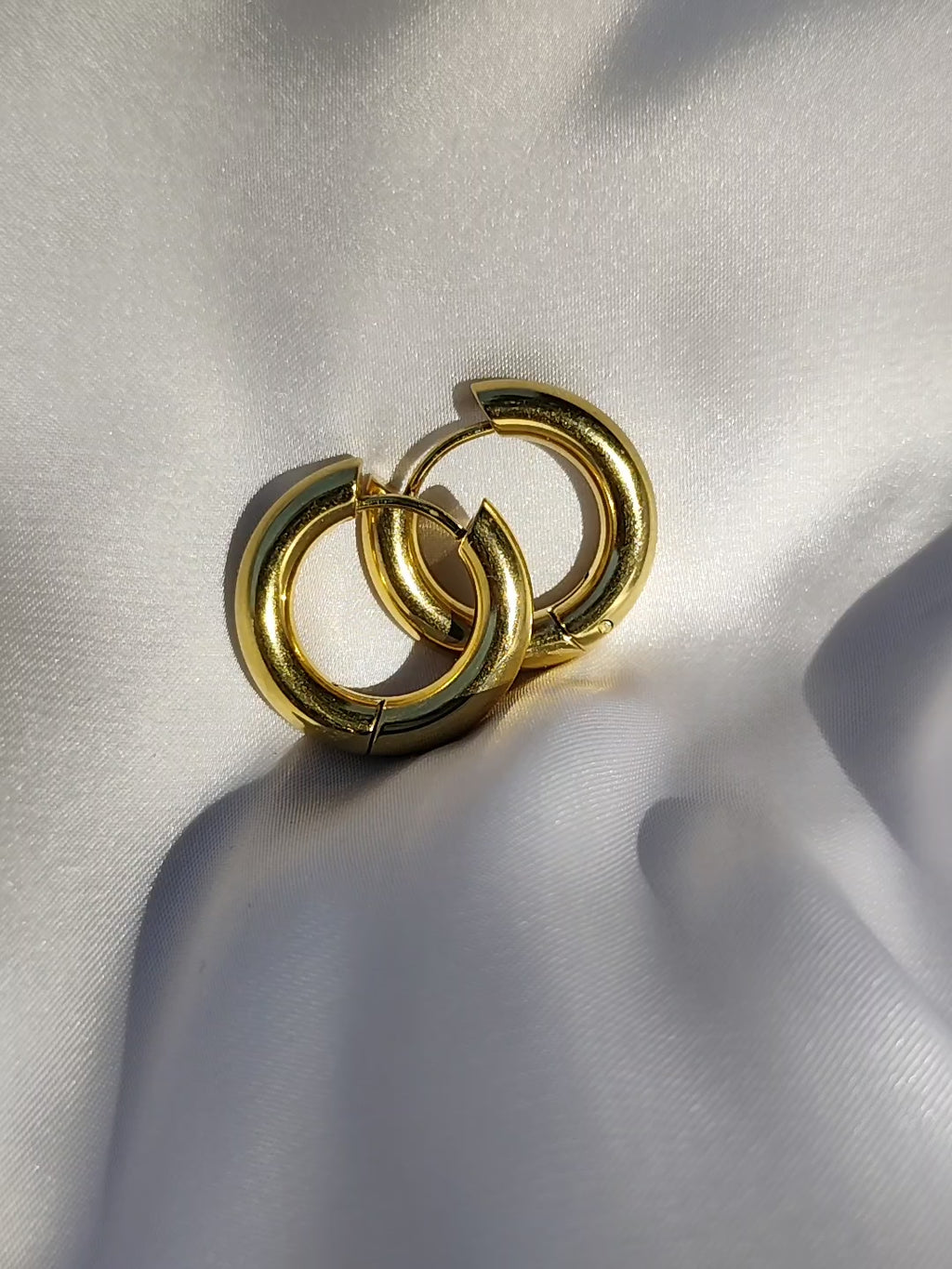 Realizați din oțel inoxidabil premium și placați cu aur de 18K, acești hoops au un luciu cald, rafinat și o formă perfect echilibrată — nici prea mari, nici prea mici.