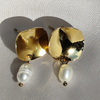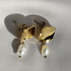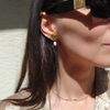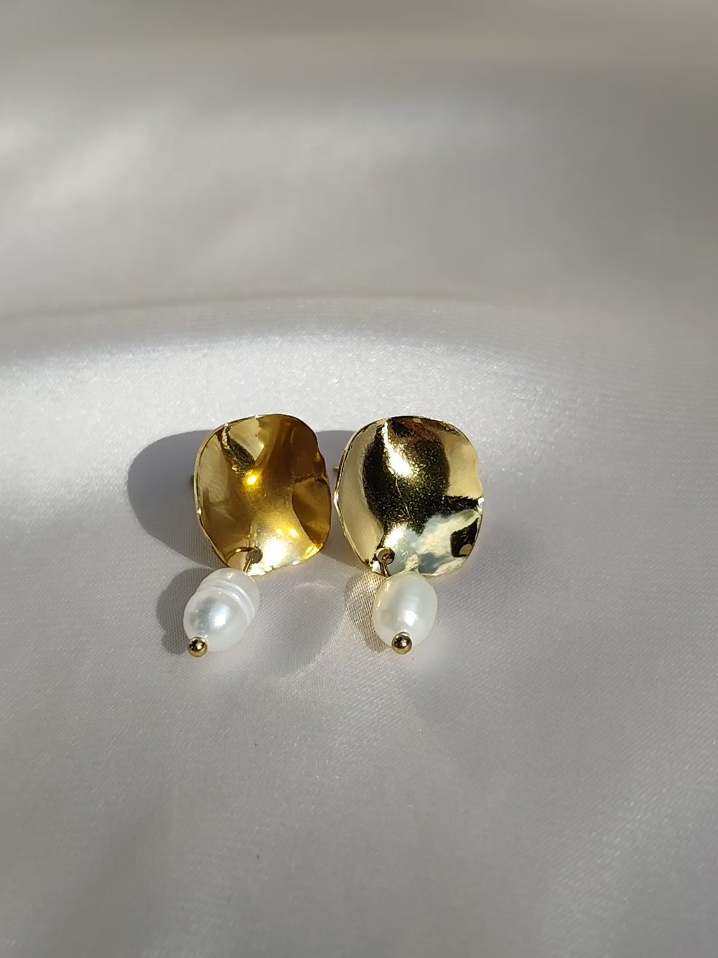 Asimetrici Či decoraČi cu perluČe mici albe, aceČti cercei aduc un echilibru perfect Ć®ntre delicateČe Či atitudine. RealizaČi din oČel inoxidabil placat cu aur de 18K, sunt uČori, eleganČi Či cu un aer jucÄuČ.