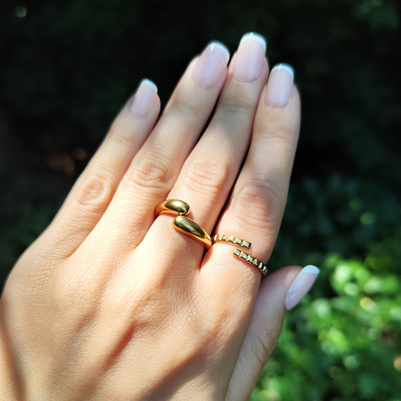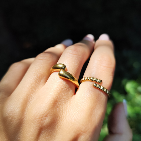 De la modele minimaliste, deschise, delicate, până la piese statement cu formă sculpturală, fiecare inel este realizat din oțel inoxidabil placat cu aur de 18K și gândit să se simtă ca o extensie naturală a stilului tău.